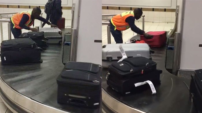 Dalam video berdurasi 42 detik tersebut, memperlihatkan seorang petugas bandara yang diketahui bernama Ephraim Sibeko.