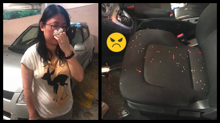 Setelah dari kantor polisi, kami kembali ke tempat parkir dan saya membantunya membersihkan kursi mobilnya yang tersiram cabai.