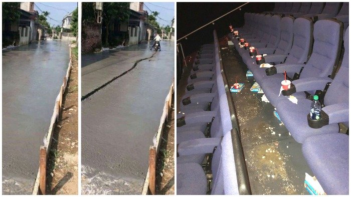 9. Orang ini nekat berkendara di jalanan beton yang baru saja dicor, meskipun sudah ada pembatas.