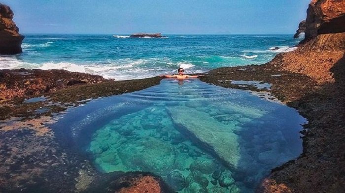 Di Kali Pucung, Tulungagung kamu bisa berenang di kolam alami yang berada tepat di tepi Samudera Hindia.