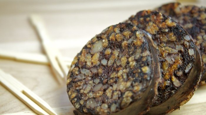 Makanan dari darah itu biasanya disebut sebagai black pudding atau blood sausage.