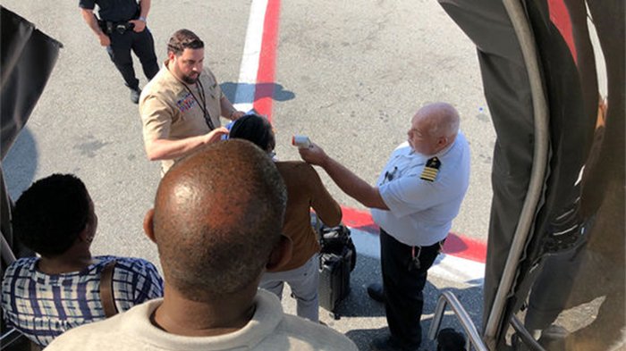 Sesaat setelah mendarat, Centers for Disease Control and Prevention (CDC) langsung memeriksa seluruh penumpang.