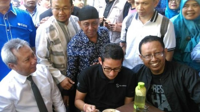 TRIBUNTRAVEL.COM - Sandiaga Uno didampingi oleh Rektor Surakarta'>Universitas Muhammadiyah Surakarta (UMS) beserta rombongannya menyantap Soto Ayam Kampung "Pak Timbul", Sabtu (22/9/2018).