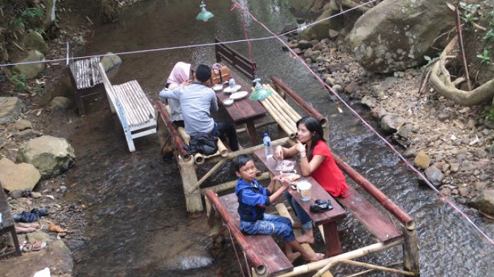 Di sana traveler bisa menikmati santapan khas di tengah derasnya aliran sungai.