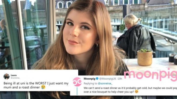 Moonpig berkata bahwa mereka akan mengirimkan buket bunga untuk Laura.
