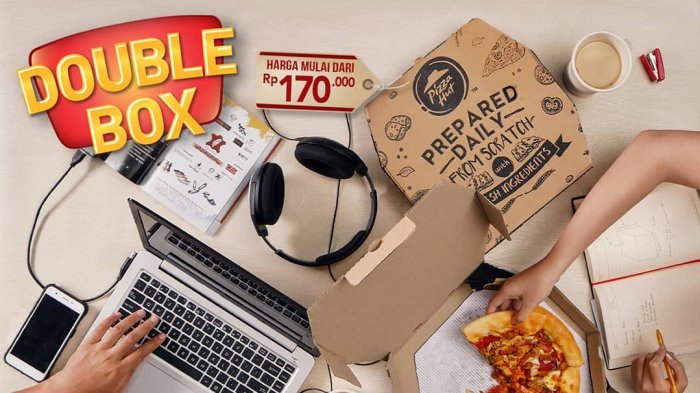"satu pizza tidak cukup? pesan #DoubleBoxPH aja! dua pizza dengan harga yang lebih hemat untuk takeaway hanya di #PizzaHutResto!" informasi dalam akun Instagram @pizzahut.indonesia.