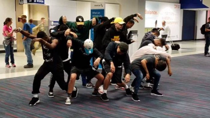 Funkywunks mengunggah video aksi dance memukau mereka dengan caption: "Delayed Flight for 6 hours in Dallas. Many angry & tired passengers. Soooo Funkywunks sprung into action to do what we do BEST!!! Entertain and put smiles back on their faces!"