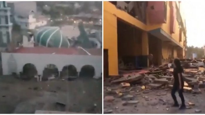 Satu video menunjukkan terjangan tsunami yang mengenai Masjid Baiturrahman yang berlokasi di Palu Grand Mall.