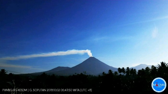 "Gunung Soputan di Minahasa Tenggara Provinsi Sulawesi Utara meletus pada 3/10/2018 pukul 08.47 WITA. ," tulisnya dalam akun Twitternya.