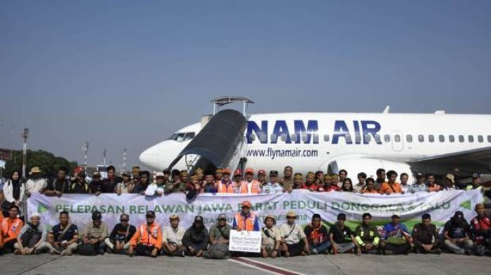 Pemberangkatan 70 orang yang akan membantu daerah yang terkena bencana ini menggunakan pesawat NAM Air yang disewa oleh pemerintah Provinsi Jawa Barat.