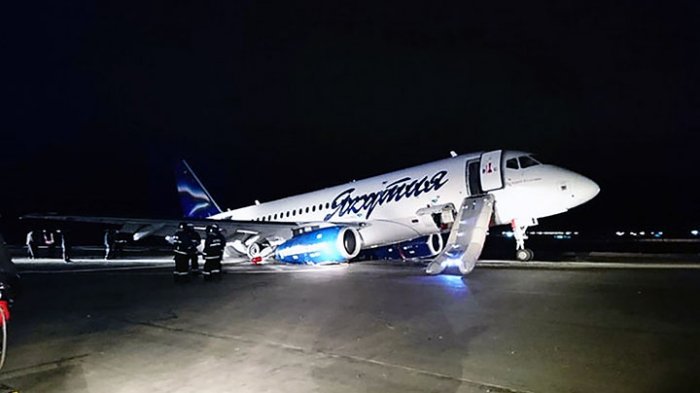 Pesawat milik maskapa penerbangan Yakutia Airlines itu akhirnya berhenti setelah roda pendarat di bawah sayap patah.