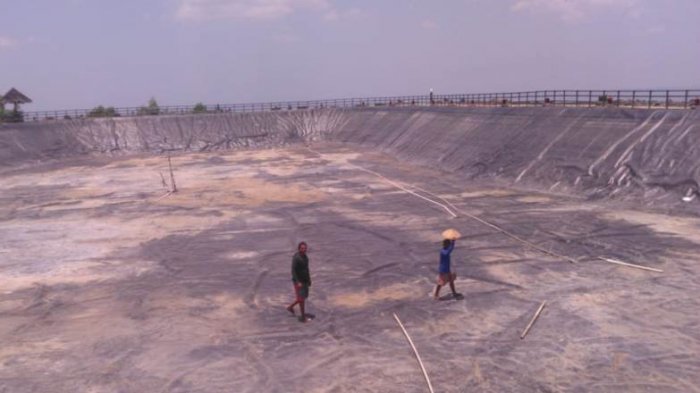 Untuk itu pengelola berinisiatif untuk mengalirkan air ke tanaman-tanaman hingga akhirnya embung mengering.