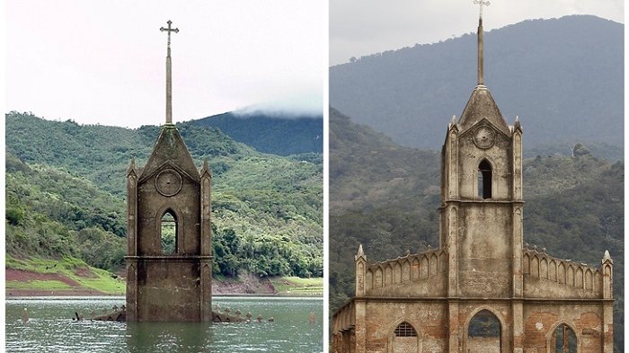 Tribun Travel melansir dari Bright Side, mengenai bangunan dan lokasi bersejarah ini telah terkubur dibawah air dan kemudian muncul kembali.