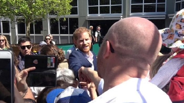 Tapi untungnya Meghan dan Harry malah menyapa dan menghampirinya.