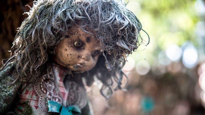 Pulau ini juga sebagai rumahnya bagi boneka-boneka yang mengerikan yang bergantung di atas pepohonan.