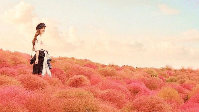 Kochia memiliki bentuk yang bulat seperti bola-bola, sehingga kita seperti melihat bola-bola pink yang menyala tersebar di seluruh taman.