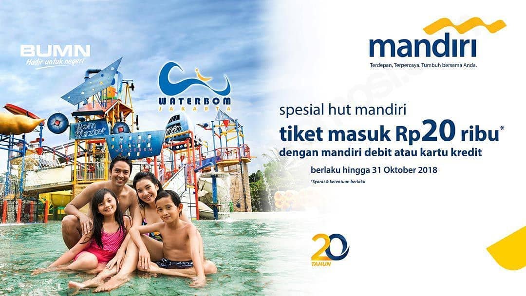 Jangan Lewatkan Promo HUT MANDIRI ke 20, harga spesial untuk tiket masuk ke Waterbom Jakarta lebih murah.