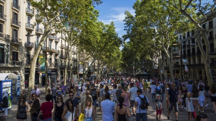 Las Ramblas merupakan jalan utama di Barcelona menghubungkan kawasan komersial dan area berbelanja dengan laut.
