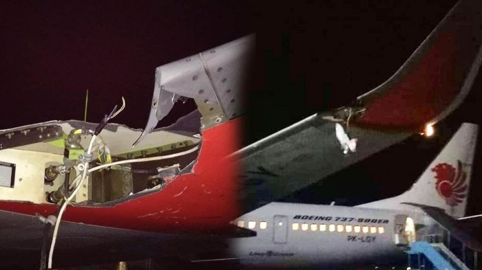 Akibat kekeliruan ini ujung pesawat Lion Air menabrak tiang lampu koordinat.