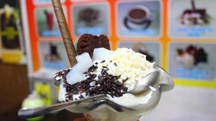 Sop durian sendiri diolah dari daging durian yang lezat, menjadi berbentuk cairan saus yang kental dan dipadukan dengan aneka toping kesukaan.