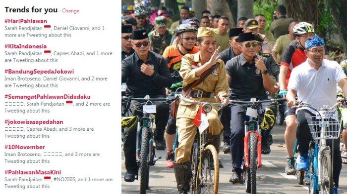 Momen Jokowi bersepeda dengan berbaju veteran ini pun menarik perhatian warganet, tagar #BandungSepedaJokowi dan #Jokowisasapedahan menjadi trending topic di Twitter.