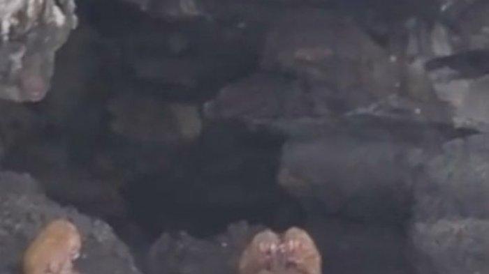 Monyet misterius ini terlihat sedang berlindung di bawah bebatuan di Railay, Krabi, Thailand.