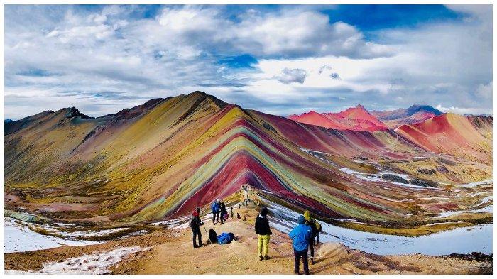 TRIBUNTRAVEL.COM - Di Peru ada satu gunung yang unik dan berbeda dari gunung lainnya bernama Rainbow Mountain atau juga Vinicunca Mountain terletak di jantung Pegunungan Andes.