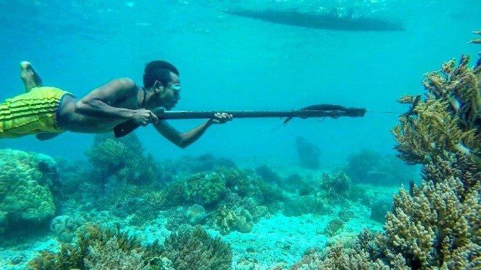 Kegiatan menyelam suku Bajo ini dilakukan tanpa bantuan alat selam apa pun, lo!