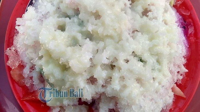 Buah ini juga disajikan dengan parutan es balok yang ditambahkan dengan susu kental yang memberikan rasa manis.