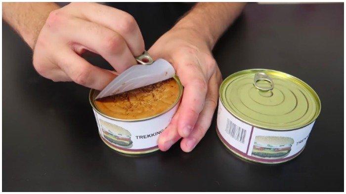 Kamu bisa memasak Trekking Burger dengan cara merendam kalengnya di dalam air panas.