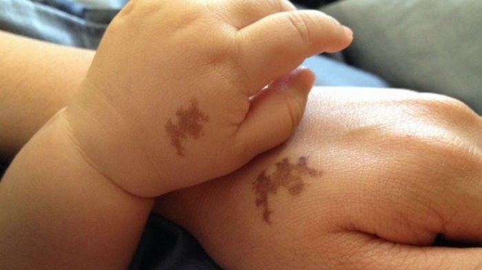 Ayah dan anak ini memiliki kemiripan tanda lahir yang unik dan sangat jelas.