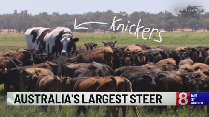 Karena ukuran yang sangat besar banyak orang percaya Knicker adalah sapi terbesar di Australia.