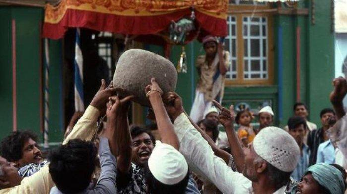 Para pengikut Qamar Ali Darvesh percaya bisa mengangkat batu seberat 90 kg tersebut dengan mudah hanya setelah meneriakkan dengan keras nama Qamar Ali Darvesh.