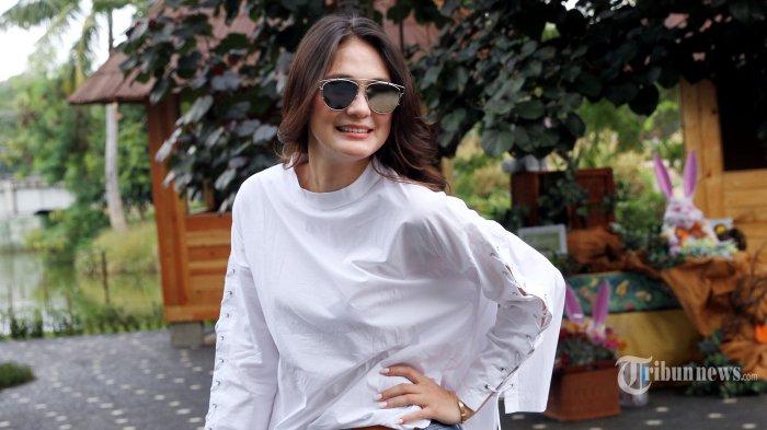 Luna berpose sambil menggandeng mesra sang ibu yang berada disampingnya.