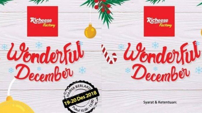 Promo Richeese Factory Wonderful December hanya akan digelar selama dua hari saja dan berbatas waktu.