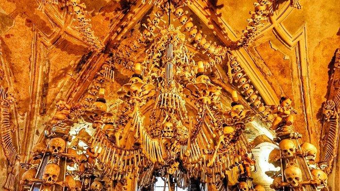 TRIBUNTRAVEL.COM - Sedlec Ossuary adalah sebuah kapel gothic yang terletak di Kutna Hora, Ceko mempunyai dekorasi interior yang tidak biasa bahkan cenderung cukup menyeramkan.