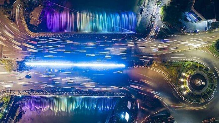 TRIBUNTRAVEL.COM - Semarang saat ini punya atraksi baru yang bernama Semarang Bridge Fountain yang mirip dengan atraksi jembatan Banpo di Sungai Han, Korea Selatan.