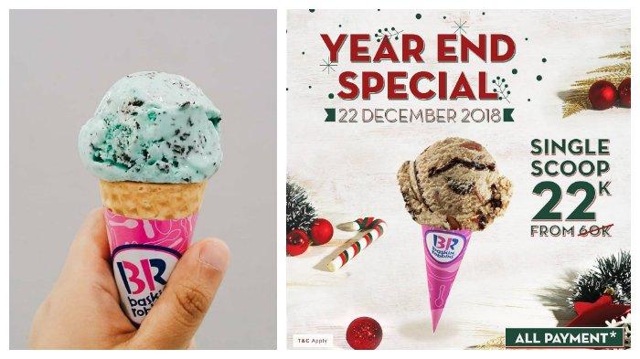 TRIBUNTRAVEL.COM - Baskin Robbins menawarkan promo spesial di akhir tahun khusus hari ini, Sabtu 22 Desember 2018.