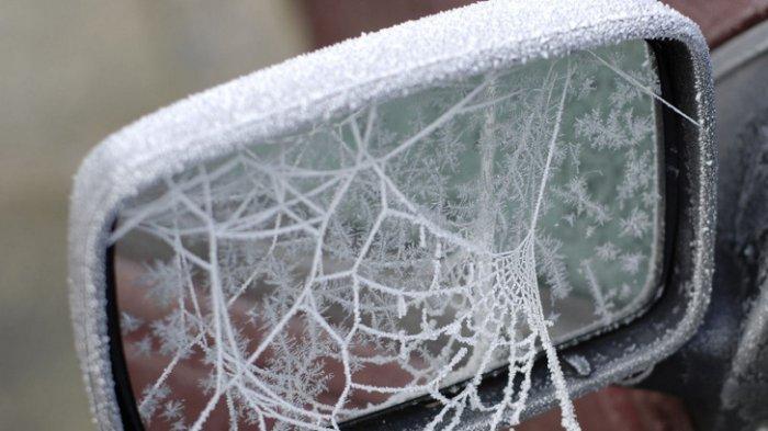4. Maha karya yang dibentuk alam di atas atap mobil yang membeku.