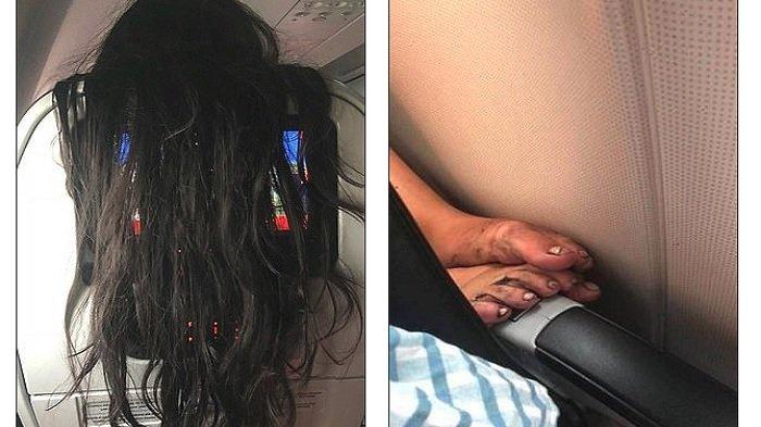 Berikut foto-foto penumpang tidak sopan yang ditangkap Kathleen dirangkum dari Dailymail.co.uk dan Instagram @passengershaming