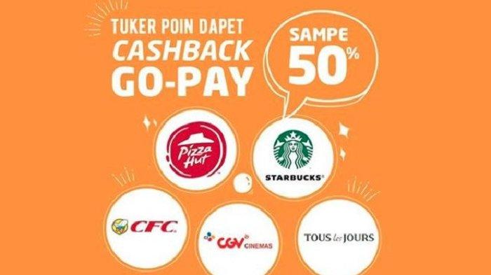 Sekarang kamu bisa menukarkan poin kamu dengan voucher Cashback GO-PAY sampai dengan 50% di berbagai merchant ini.
