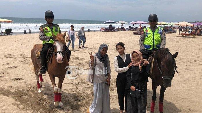 TRIBUNTRAVEL.COM - Banyaknya wisatawan domestik maupun internasional yang berkunjung ke Pantai Kuta mendapat perhatian dari jajaran Unit Satwa Turangga Direktorat Sabhara Polda Bali.