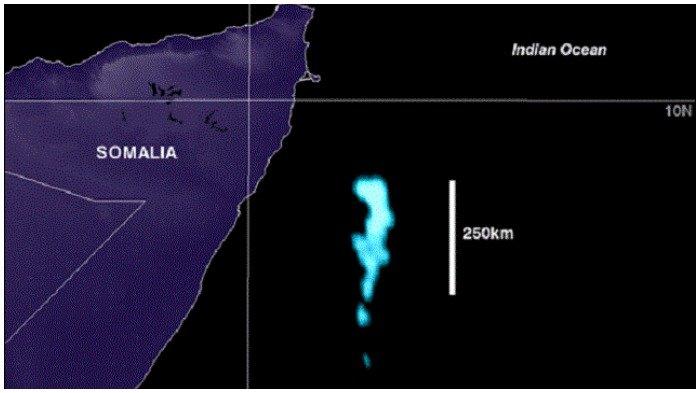 Ketika mereka menerapkan koordinat yang dicatat oleh S.S. Lima pada data arsip tersebut, Steve Miller dan timnya tiba-tiba melihat area besar yang berpendar dari Tanduk Afrika, tepatnya di lepas pantai Somalia.