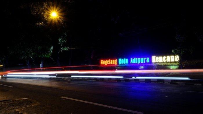 Saat malam hari, tulisan 'Magelang Kota Adipura Kencana' itu menyala warna-warni.