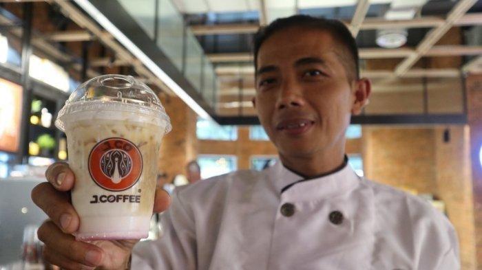 Manager on duty J.CO Sawunggaling, Kota Bandung, Baban mengatakan menu yang baru dirilis pada Januari 2019 ini memadukan antara rasa kopi dan sirup sakura dengan aroma yang lembut.