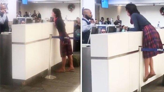TRIBUNTRAVEL.COM - Penumpang maskapai JetBlue mengamuk dengan berteriak keras kepada seorang staf maskapai di Bandara Internasional Fort Lauderdale, AS, Minggu (6/1/2019).