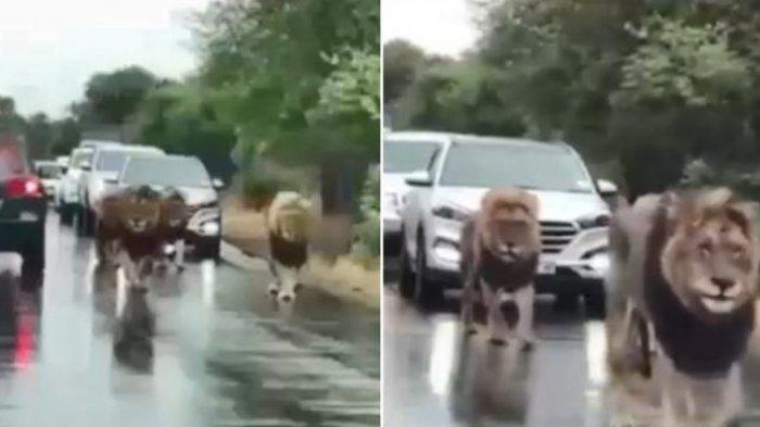 TRIBUNTRAVEL.COM - Sebuah video viral yang ditonton oleh 2 juta penonton di seluruh dunia menunjukkan hamparan mobil yang berjejer di belakang empat singa jantan dewasa di sepanjang jalan di Taman Nasional Kruger, Afrika Selatan.