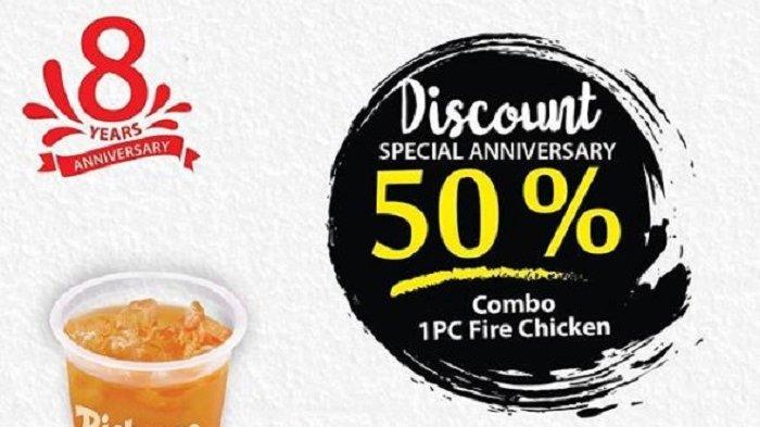 Buruan yuk, ikutan diskon spesial Aniversary 50 persen untuk combo 1 pc Fire Chicken dari Richeese Factory.