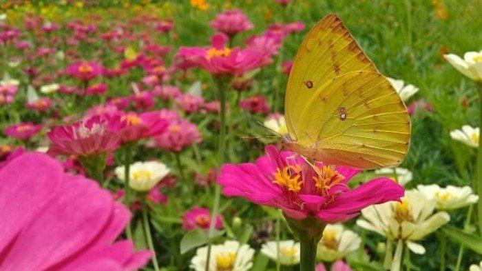 Jika pas musimnya seperti ketika akhir tahun 2018, maka akan ada ribuan kupu-kupu yang beterbangan di antara warna-warni bunga.