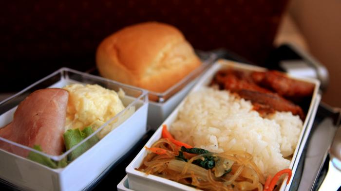 Penumpang bernama Bradley Button kala itu sedang makan nasi selama penerbangannya.